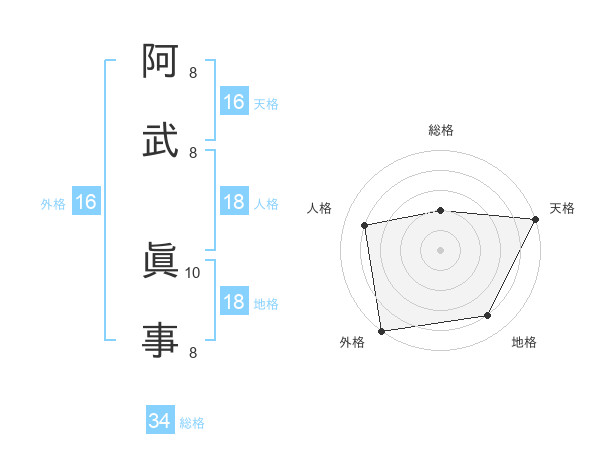 阿武 眞事さんの天格は16画の5点!
