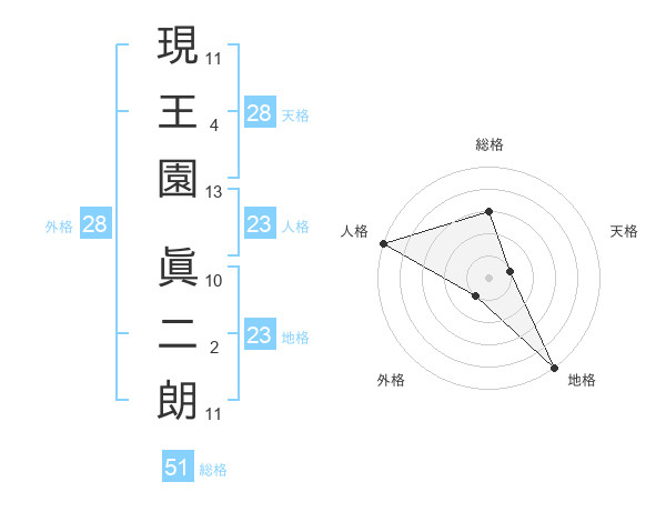 現王園 眞二朗さんを姓名の画数から五運を鑑定