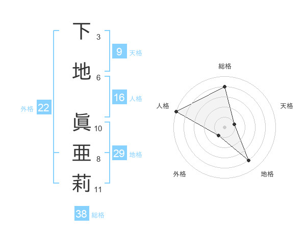下地 眞亜莉さんを姓名の画数から五運を鑑定