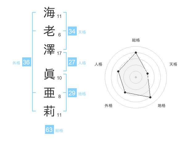 海老澤 眞亜莉さんを姓名の画数から五運を鑑定