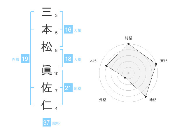 三本松 眞佐仁さんを姓名の画数から五運を鑑定