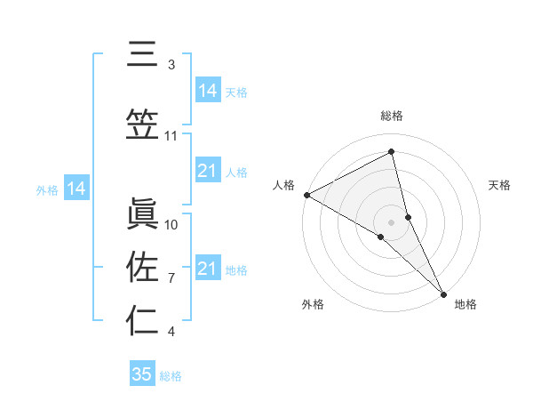 三笠 眞佐仁さんを姓名の画数から五運を鑑定