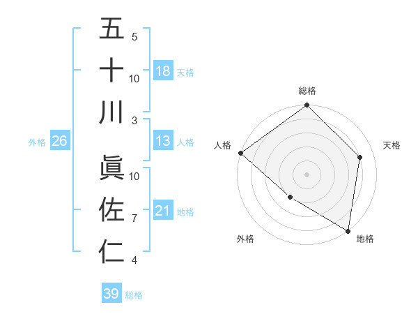 五十川 眞佐仁さんを姓名の画数から五運を鑑定