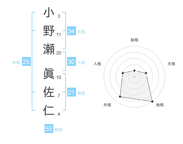 小野瀬 眞佐仁さんを姓名の画数から五運を鑑定