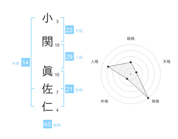 小関 眞佐仁さんを姓名の画数から五運を鑑定