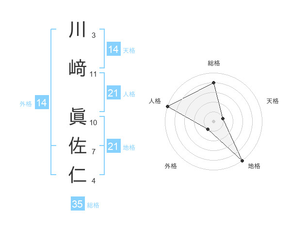 川﨑 眞佐仁さんを姓名の画数から五運を鑑定