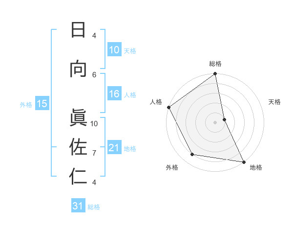 日向 眞佐仁さんを姓名の画数から五運を鑑定