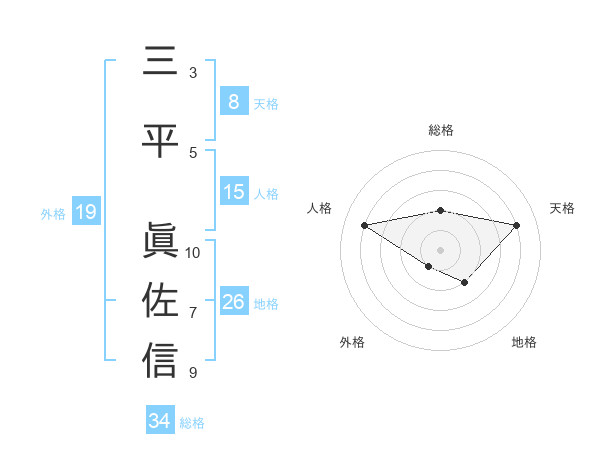 三平 眞佐信さんを姓名の画数から五運を鑑定