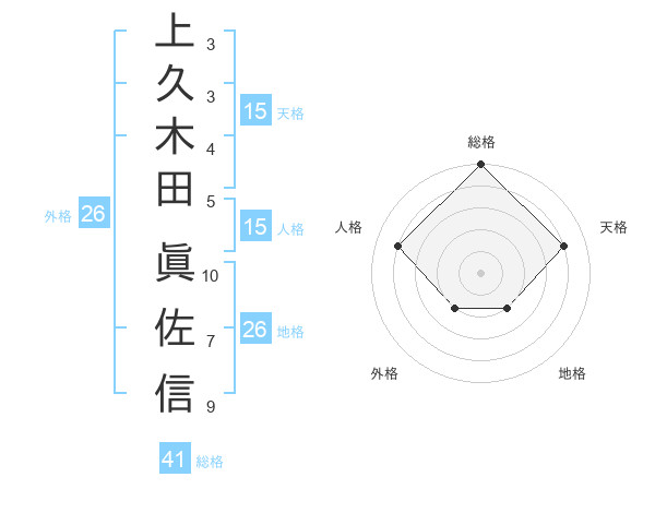 上久木田 眞佐信さんを姓名の画数から五運を鑑定