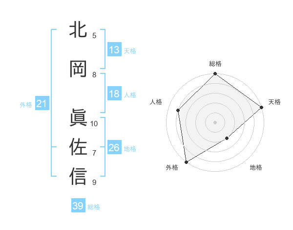 北岡 眞佐信さんを姓名の画数から五運を鑑定