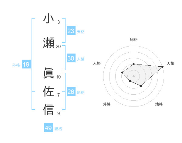 小瀬 眞佐信さんの天格は23画の5点!