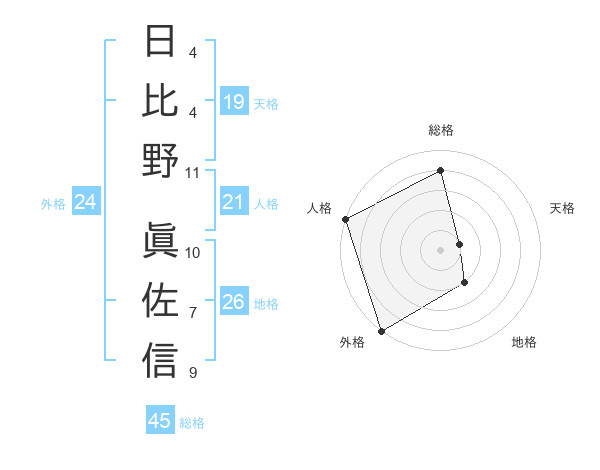 日比野 眞佐信さんを姓名の画数から五運を鑑定