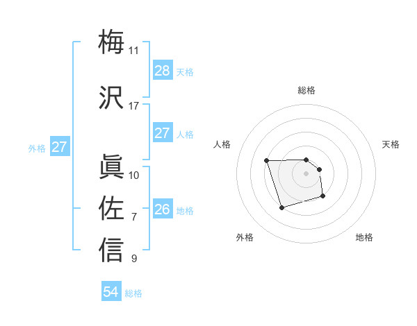 梅沢 眞佐信さんを姓名の画数から五運を鑑定
