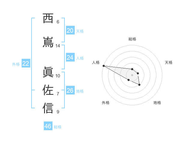 西嶌 眞佐信さんの外格は22画の1点!