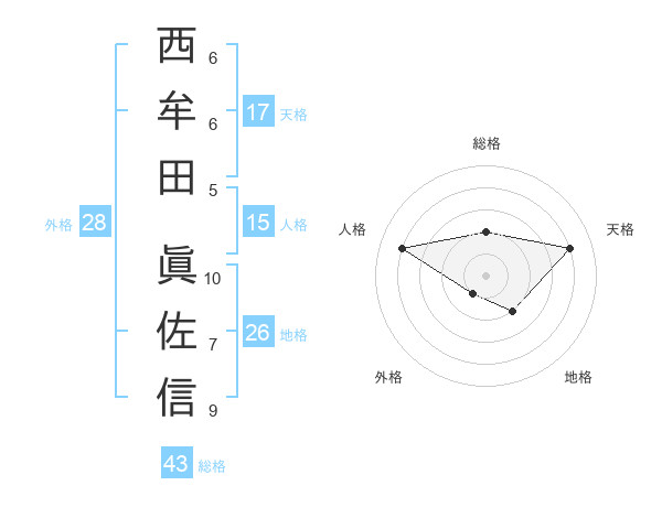 西牟田 眞佐信さんを姓名の画数から五運を鑑定