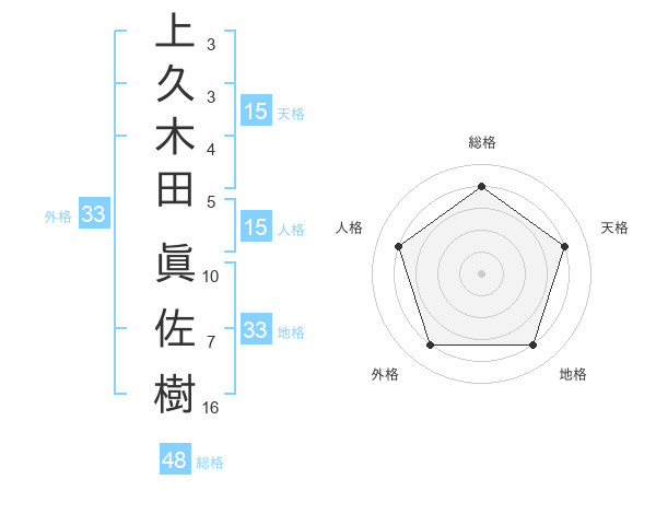 上久木田 眞佐樹さんを姓名の画数から五運を鑑定