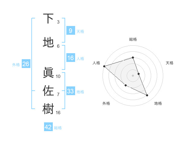 下地 眞佐樹さんの総格は42画の3点!