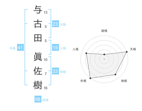 与古田 眞佐樹さんの外格は41画の5点