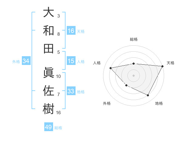 大和田 眞佐樹さんの天格は16画の5点!