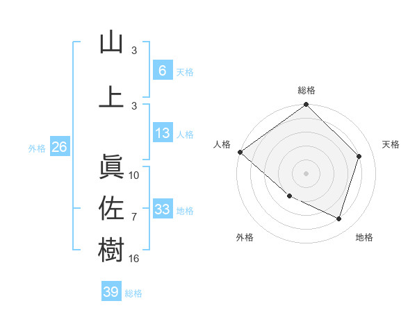 山上 眞佐樹さんの総格は39画の5点!