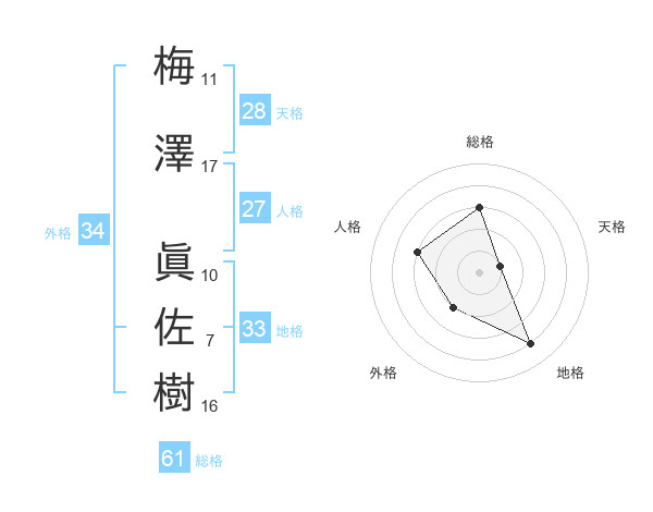 梅澤 眞佐樹さんの総格は61画の3点!