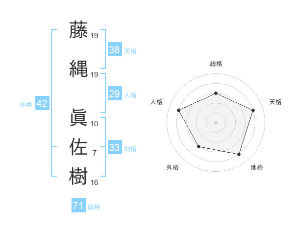 藤縄 眞佐樹さんの総格は71画の3点!