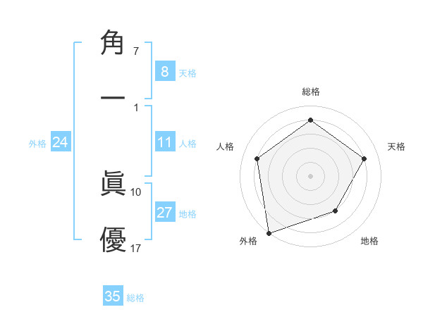 角一 眞優さんの総格は35画の4点!