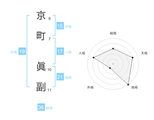 京町 眞副さんの地格は21画の5点!