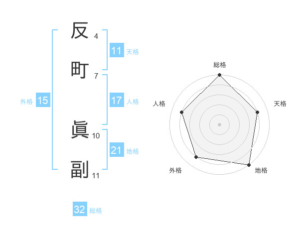 反町 眞副さんの地格は21画の5点!
