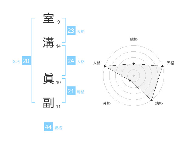 室溝 眞副さんの天格は23画の5点!