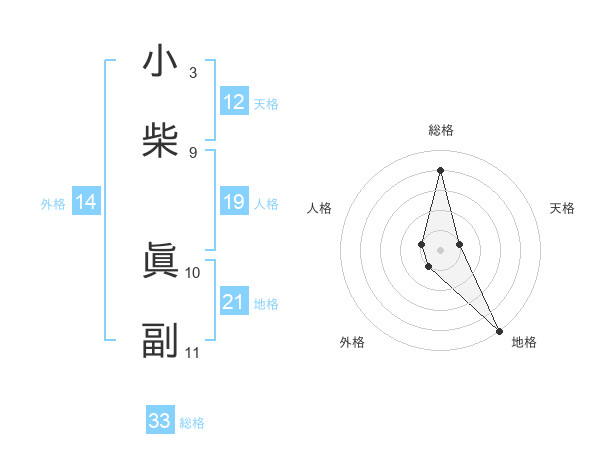 小柴 眞副さんを姓名の画数から五運を鑑定