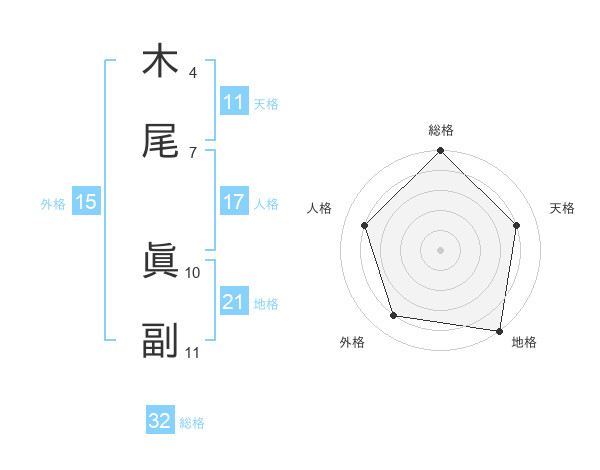 木尾 眞副さんの総格は32画の5点!