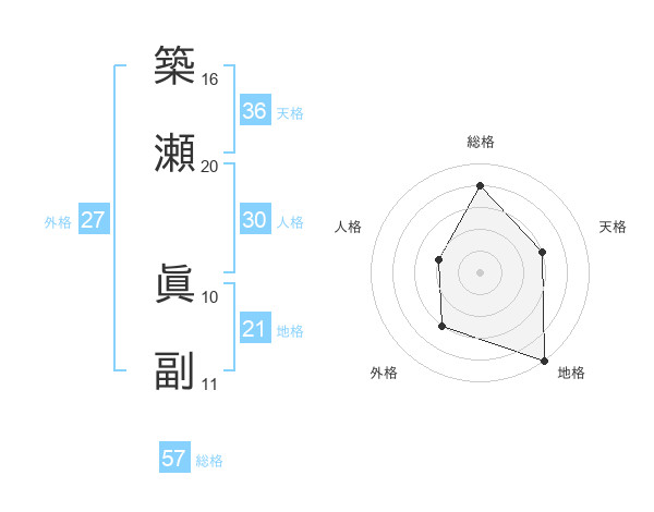 築瀬 眞副さんの総格は57画の4点!