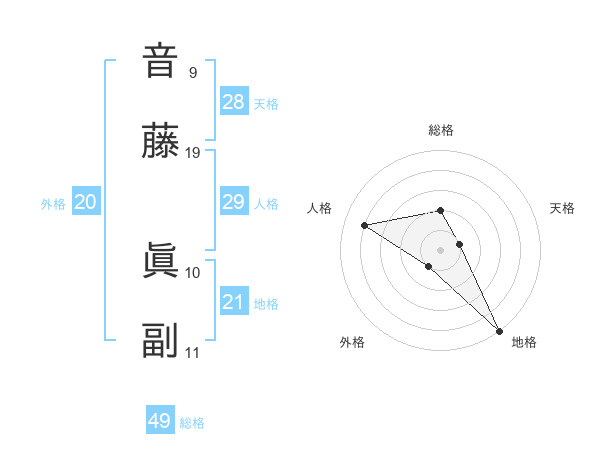 音藤 眞副さんを姓名の画数から五運を鑑定