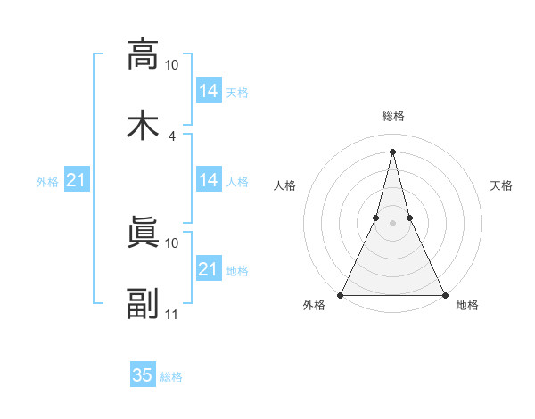高木 眞副さんの総格は35画の4点!