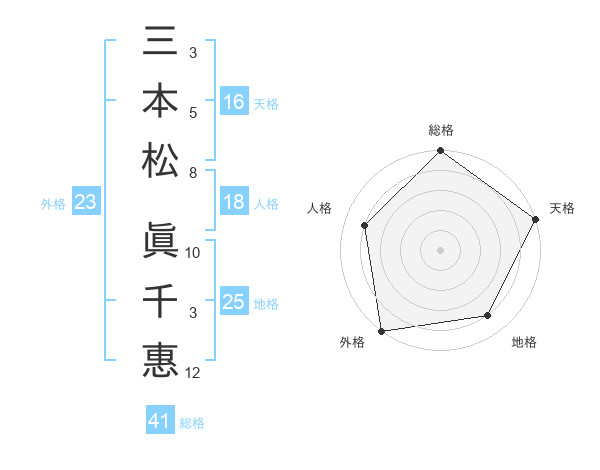 三本松 眞千惠さんを姓名の画数から五運を鑑定
