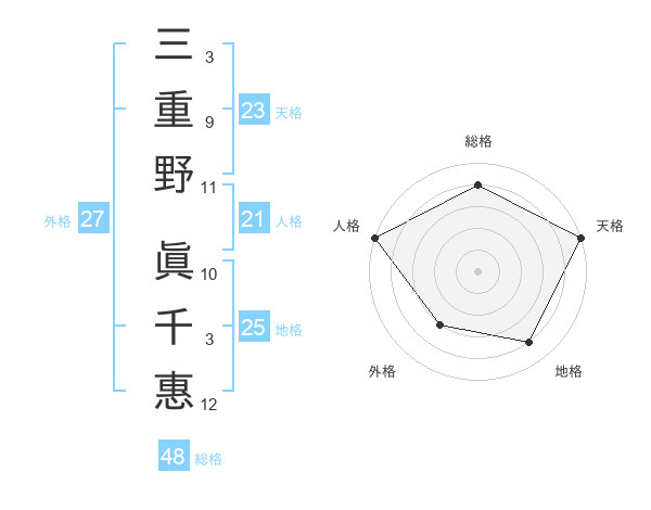 三重野 眞千惠さんを姓名の画数から五運を鑑定