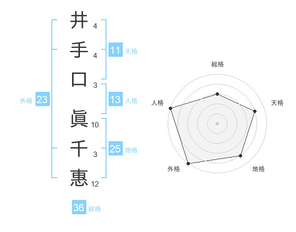 井手口 眞千惠さんの外格は23画の5点!