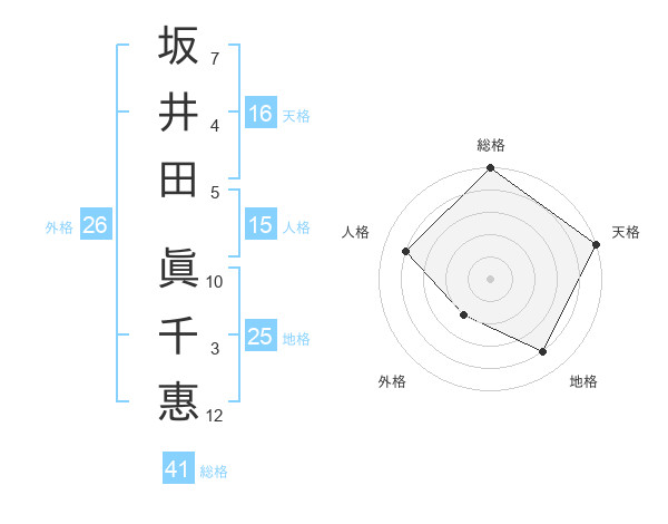 坂井田 眞千惠さんの名前の鑑定結果は!