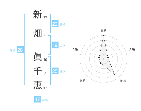 新畑 眞千惠さんを姓名の画数から五運を鑑定