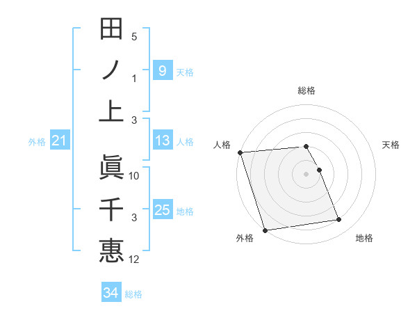 田ノ上 眞千惠さんの外格は21画の5点!