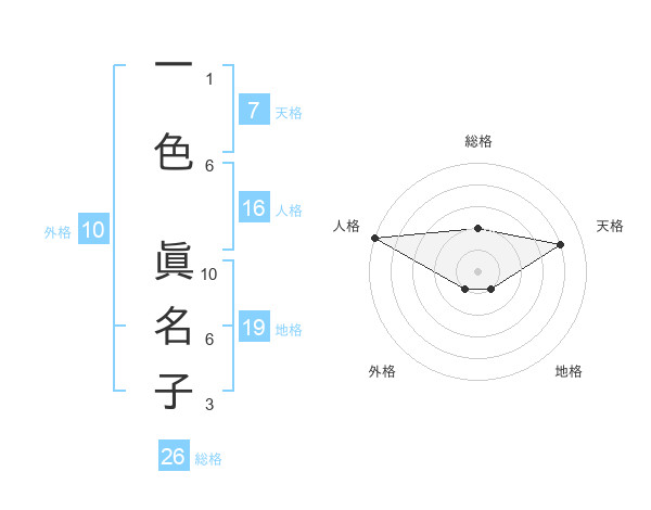 一色 眞名子さんを姓名の画数から五運を鑑定
