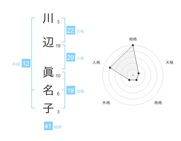 川辺 眞名子さんを姓名の画数から五運を鑑定