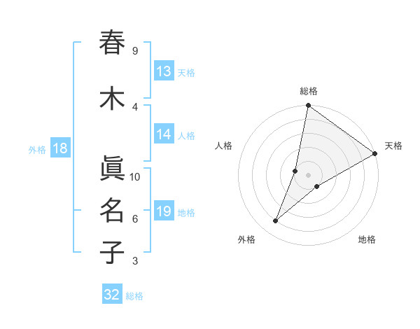 春木 眞名子さんを姓名の画数から五運を鑑定
