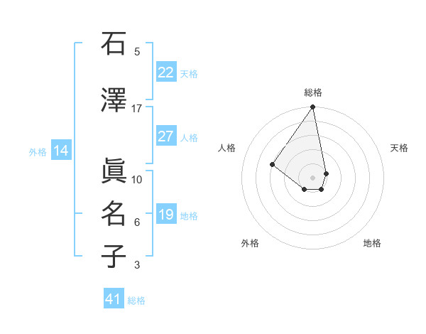 石澤 眞名子さんの天格は22画の1点!