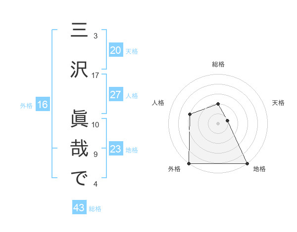 三沢 眞哉でさんの総格は43画の2点!