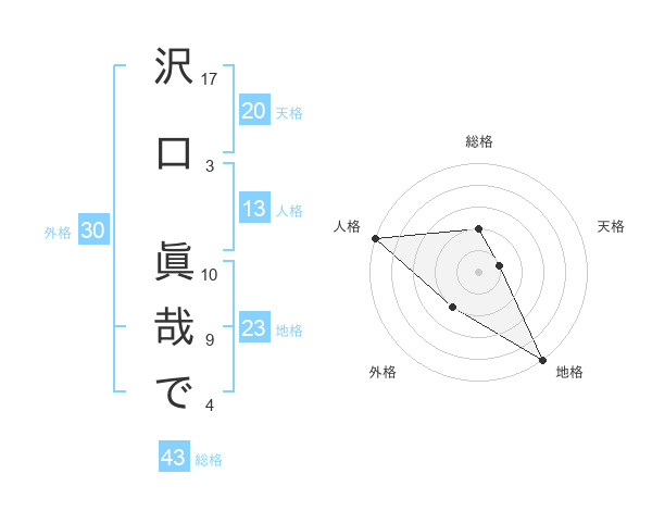 沢口 眞哉でさんを姓名の画数から五運を鑑定