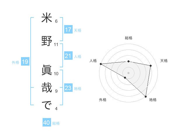 米野 眞哉でさんを姓名の画数から五運を鑑定