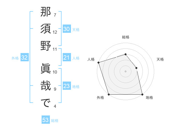 那須野 眞哉でさんを姓名の画数から五運を鑑定
