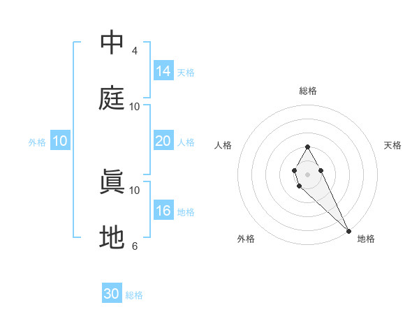 中庭 眞地さんの総格は30画の2点!